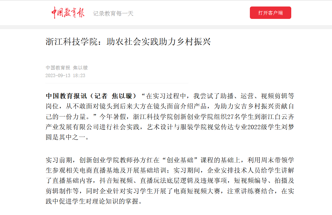 中国教育报客户端:浙江科技学院:助农社会实践助力乡村振兴