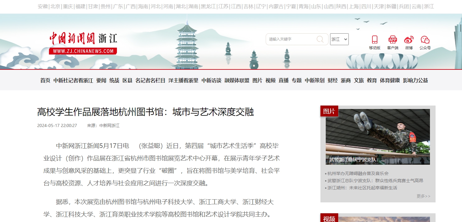 中国新闻网:高校学生作品展落地杭州图书馆:城市与艺术深度交融