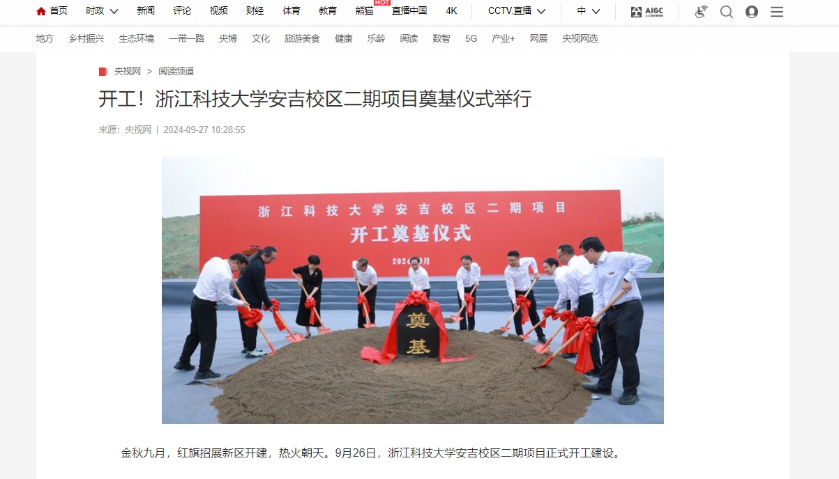 央视网、光明日报客户端、中国教育在线、中国教育新闻网、潮新闻客户端、浙江卫视Z视介等关注我校安吉校区二期项目开工