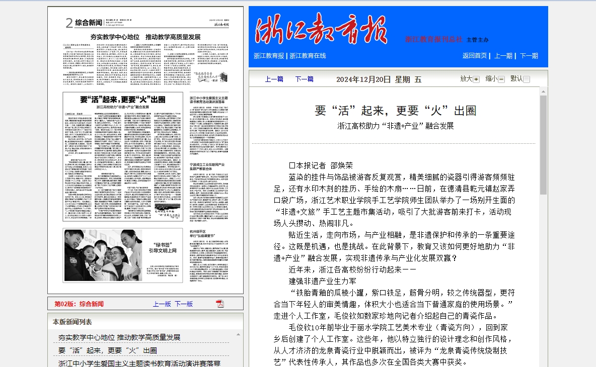 浙江教育报:要“活”起来,更要“火”出圈 浙江高校助力“非遗+产业”融合发展
