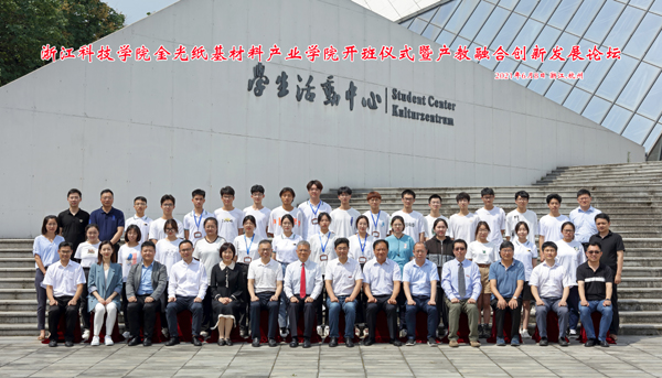 在随后举行的产教融合创新发展论坛上,浙江省造纸学会理事长胡开堂作题为“纸基材料行业现状与分析”报告,介绍全国以及浙江纸基材料企业发展现状。浙江省绿色科技文化促进会秘书长忻皓阐述我国碳减排和以纸代塑的背景与政策。环资学院胡志军、张学金分别介绍金光纸基材料产业学院概况、建设进展与建设规划,纸基材料团队的最新创新成果。(环资学院 郭大亮)