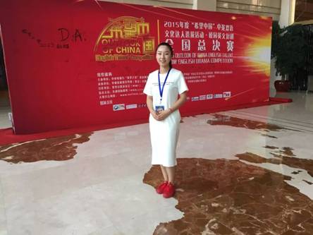 本届大赛主题为I Believe I Can Shine(我是最闪亮的英语达人),在个性演讲、英文才艺、英语情景角色扮演和个人才艺四个环节中李寰同学均表现出色,成为闪亮的英语达人。此次为我校首次参与该赛事,自比赛启动以来,外语/中德学院高度重视,在学院的统筹指导和经费支持下,参赛选手和指导教师投入大量精力,李寰同学全力以赴,经此前的2015年CCTV“希望之星”英语风采大赛我校、杭州市和浙江省各级赛区比赛的选拔和历练,以及暑期刻苦备战,终获佳绩。