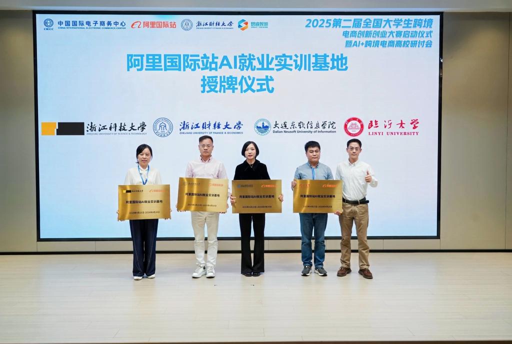 近日,2025年第二届全国大学生跨境电商创新创业大赛启动仪式暨 AI + 跨境电商高校研讨会举行,正式发布了“阿里国际站AI就业实训基地”项目,我校成为首批项目共建单位之一。
